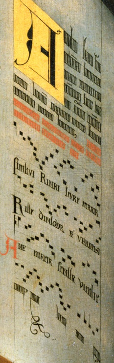 | Detail showing early sheet music of a psalm. |